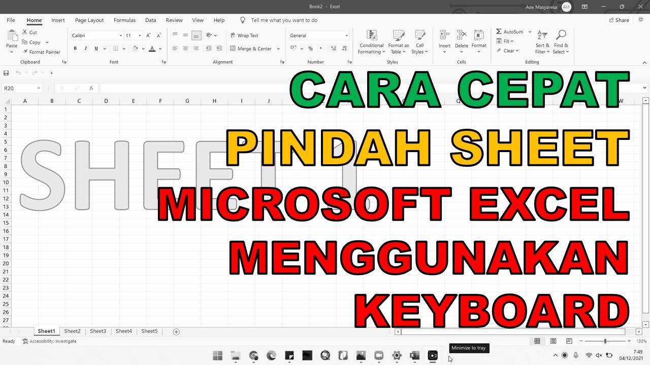 - Menggunakan tombol Alt + Tab untuk pindah ke sheet yang terakhir dibuka.